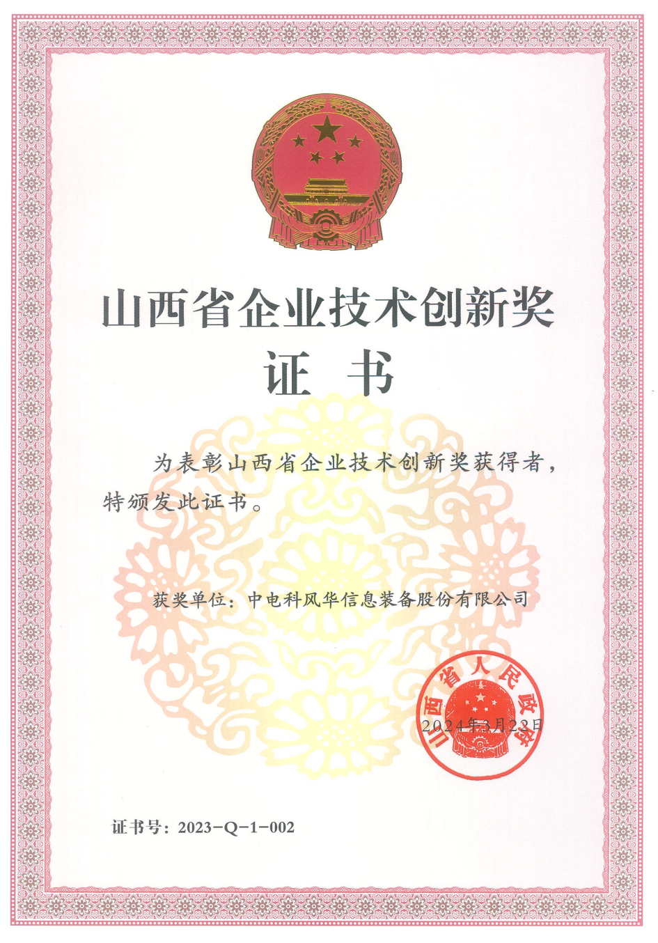 企業技術創新獎是山西省科學技術獎針對創新企業設立的最高類別的綜合獎項,授予在科學技術創新中取得顯著成效的企業。獲獎企業除了取得重大技術創新成果外,還必須具備持續創新能力強、擁有本行業高端技術和自主知識產權,在業態創新、產業結構調整、高質量發展等方面發揮著顯著的示范作用。2023年度全省僅6家企業獲獎。